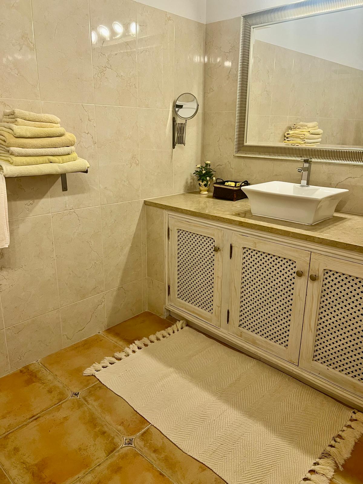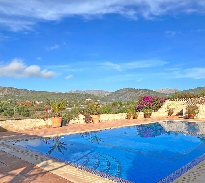 Further features include - Two detached guest apartments , a huge swimming pool , ample sun terraces , shaded pergolas , carport, private well with osmosis/ irrigation system , a working fire place , AC hot and cold heating